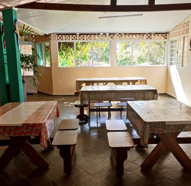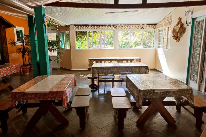 O restaurante, com vista para a mata e área pet friendly, oferece sabor, aconchego e bem-estar em cada refeição.