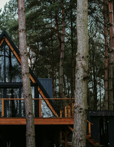The Forest Cabin is designed for simplicity and calm – a space where every detail feels intentional. Large windows open to forest light, while natural wood, linen, and stone create a soothing atmosphere. Perfect for couples or solo travelers seeking warmth and connection to nature.