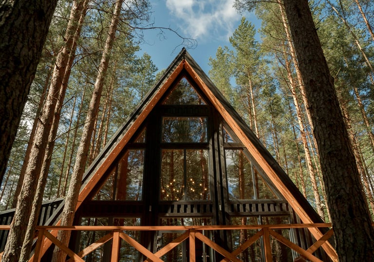 The Glass Suite is our signature modern cabin – designed to blur the line between indoors and out. Floor-to-ceiling windows invite natural light from sunrise to dusk, while minimal interiors emphasize calm and openness. It’s a place to breathe, to pause, and to feel surrounded by nature at every moment.